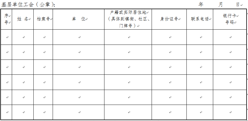 1.基層單位工會的工作:一是對本單位困難檔案中的職工家庭進(jìn)行再次核實(shí)確認(rèn),對其他困難人員協(xié)助單位有關(guān)部門進(jìn)行摸底、情況核實(shí),統(tǒng)一進(jìn)行登記、填表、公示、上報(bào);二是協(xié)助職工開具工資收入證明、核查家庭經(jīng)濟(jì)狀況等;三是對符合條件人員進(jìn)行3天公示,無異議后將申報(bào)材料復(fù)印件、登記匯總表(電子版)各一式兩份,按照困難人員的戶籍(人戶一致)或?qū)嶋H居住地(人戶分離)提交到所屬鎮(zhèn)街工會或區(qū)縣總工會(見附件4),對其中特別困難的可予以重點(diǎn)說明。特別強(qiáng)調(diào),這次專項(xiàng)活動是按照民政局的工作程序,以戶籍地為依據(jù)進(jìn)行申報(bào)、審核、發(fā)放救助金的,各基層工會不按原工會隸屬關(guān)系報(bào)送申請材料,只需將困難人員情況登記匯總表的電子版(見附件3)報(bào)上級工會。
