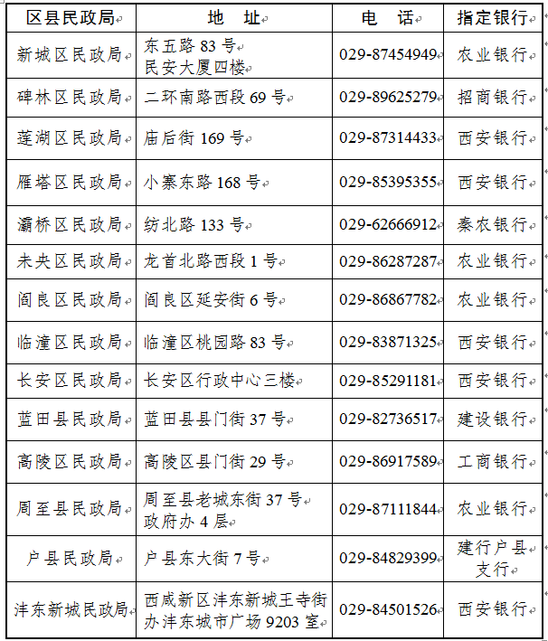 5.全市各區(qū)縣民政局地址電話及各自指定銀行表