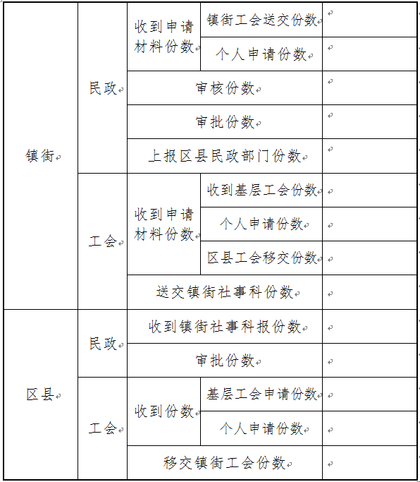 填表說明:此表分別由鎮(zhèn)街民政、工會和區(qū)縣民政、工會填寫,按照各自工作關(guān)系上報(bào)