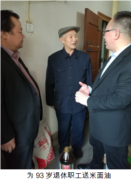 在米面油發(fā)放工作臨近尾聲之際,我部員工把行動不便退休老同志的地址列成清單,利用中午休息時間,將米面油送到他們家中。每到一戶,老同志總是緊握我們的雙手,淚花在眼里閃爍,豎起大拇指,不斷地說“謝謝!謝謝!”“你們辛苦了”“單位沒有忘記我們”,每到這時,我們心里也莫名感動。