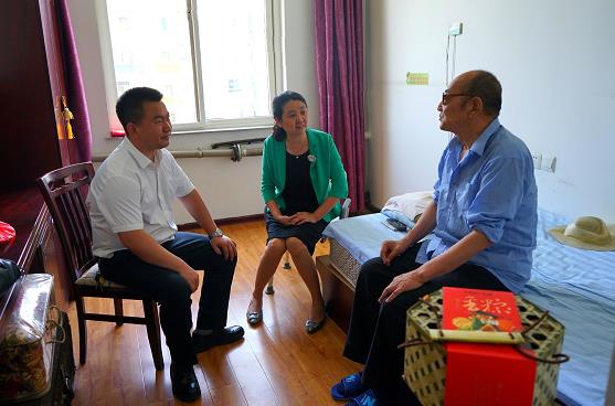 為充分體現(xiàn)企業(yè)對退休孤寡老人的深切關(guān)懷,進(jìn)一步加大上門服務(wù)代管職工,關(guān)愛關(guān)心空巢老人、孤寡老人工作力度。端午節(jié)前夕,職工中心副總經(jīng)理鄭世平帶領(lǐng)業(yè)務(wù)一部及黨群工作部工作人員,深入未央?yún)^(qū)老年福利養(yǎng)老院,給代管退休職工賀林送去節(jié)日的問候,陪老人一起過端午節(jié)。