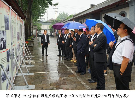 8月29日,細(xì)雨連綿中,職工服務(wù)中心全體在職黨員、預(yù)備黨員和入黨積極分子來到八路軍西安辦事處紀(jì)念館,參觀了由西安市委舉辦的“鐵血之師—紀(jì)念中國(guó)人民解放軍建軍90周年大型圖片展”。