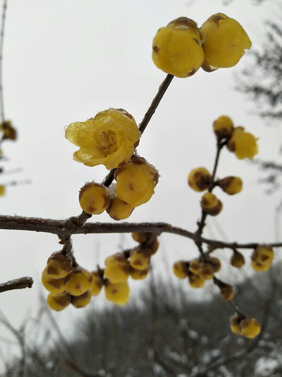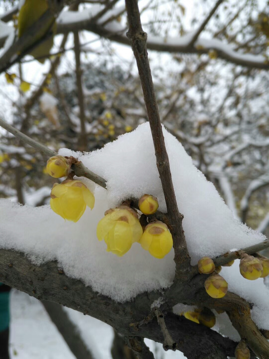 臨近梅園,淡淡地清香撲面而來,白茫茫地大地上突現(xiàn)一片鵝黃色,不禁讓人眼前一亮。走進(jìn)梅園,不由地掏出手機(jī)為晶瑩剔透地黃色小花兒拍照,真想讓這美好的瞬間在這一刻停留??粗蛆Z黃色的臘梅花依偎在白雪的懷抱里,慵懶地像樹獺,睜著惺忪的睡眼,悠然的看著雪花翩翩起舞,忍不住想用手去撫摸它,卻又住了手。臘梅花雖然沒有牡丹那么雍容華貴,沒有菊花那樣阿娜多姿,沒有月季那樣絢麗多彩,沒有荷花那樣楚楚動人,沒有米蘭那樣花香引蝶,但她是那么冰清玉潔,那么樸素、淡雅、芳香。她傲雪迎霜,凌寒獨(dú)放,讓人不由得產(chǎn)生一種敬畏之心。想起唐代禪師的詩句“不經(jīng)一番寒徹骨,怎得梅花撲鼻香”。